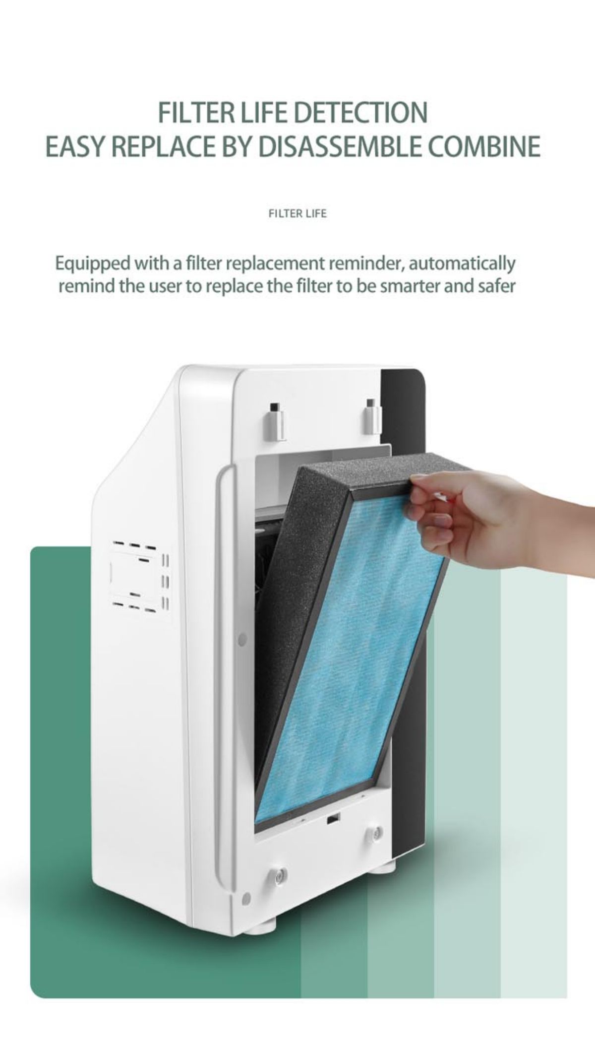دستگاه تصفیه هوا زنیت مد مدل J001، دستگاه تصفیه هوا زنیت مد از جدیدترین و به روز ترین دستگاه موجود در بازار می باشد. استفاده از این دستگاه، گرچه منجر به درمان اسم و آلرژی نمی شود ولی در کنترل آن بسیار موثر است. تصفیه هوا مدل j001 برای استفاده در محیط های متوسط تا 60 متر مربع مورد استفاده قرار میگیرد. از صدای بسیار پایینی در حد 56 دسی بل برخوردار است. این دستگاه دارای هفت مرحله تصفیه و فیلتراسیون می باشد.(فیلتر کربن، هپا، فتوکاتالیست، یون منفی) از بین برنده گردو غبار، شوره، گرده، ترکیب شناور،گازهای مضر و باکتری می شود. دارای پنج برنامه اتوماتیک حالت خواب، اتوماتیک، قدرت کم، متوسط، قدرت زیاد می باشد. همچنین این دستگاه از لامپ یووی برخوردار می باشد.