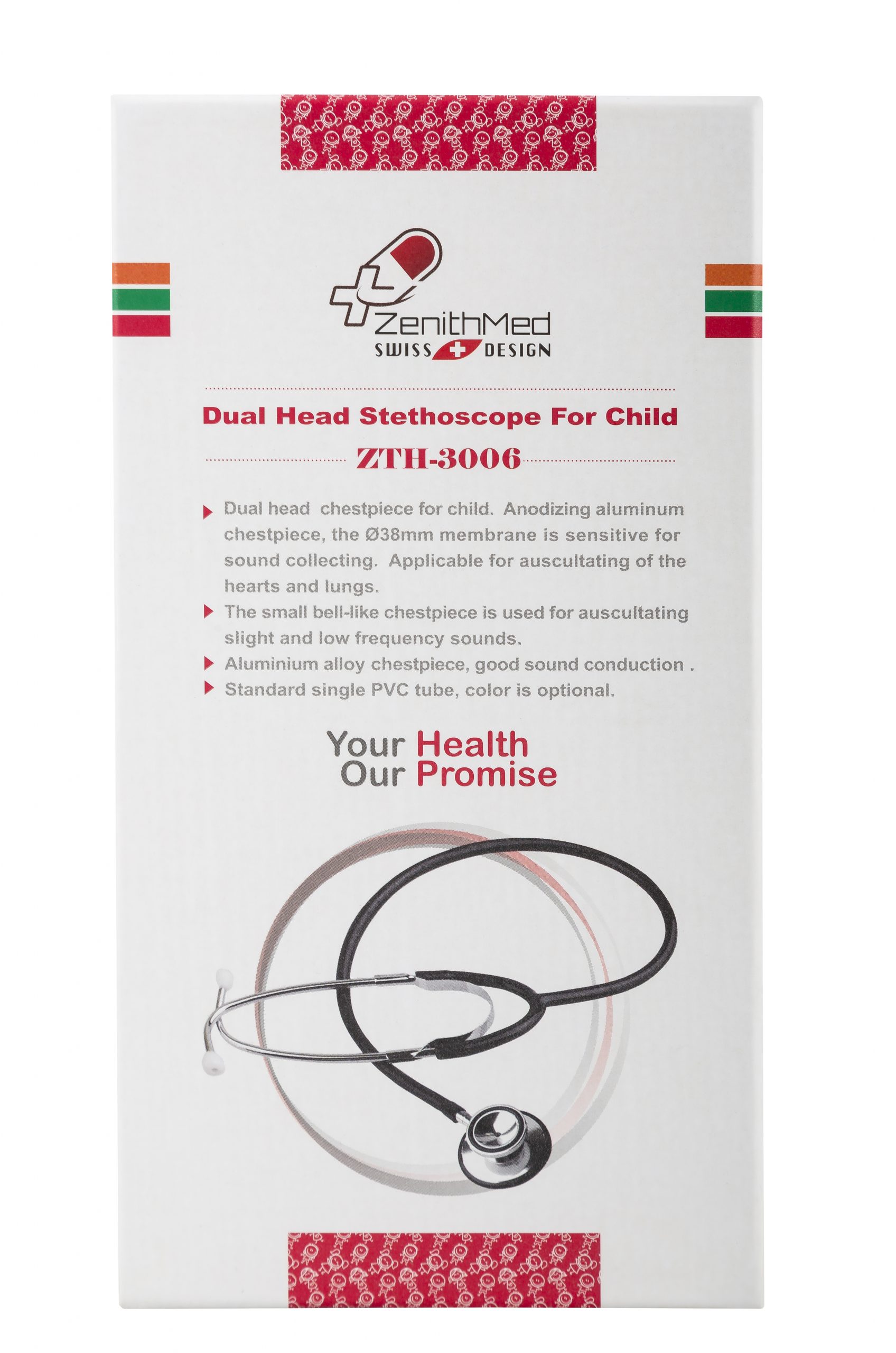 در گوشی پزشکی اطفال زنیت مد مدل 3006 جهت رسانایی بهتر صدا از پاویون آلومینیومی استفاده شده است تا صدا با قدرت بیشتری به گوش پزشک برسد .